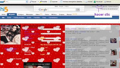 Nota: Para asegurarte que tu cambio ha sido actualizado por hi5 haz clic en Amigos y eliges a los TOP6 de Amigos y los mueves de lugar a uno o a dos de tus amigos, ya que de esta manera hi5 actualizará de manera forzosa los cambios que uno hace. Esto hacerlo cada vez que realizas un cambio ya sea que quieras cambiar tu fondo, estilo, poner videos, etc.